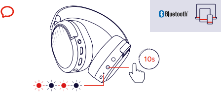 Press and hold the power button for 10 seconds until you hear a series of "beep" sounds, indicating that the headset has entered pairing mode.